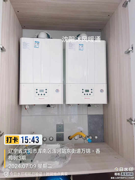 沈阳壁挂炉安装案例,万锦香樟树500平别墅壁挂炉完毕。
